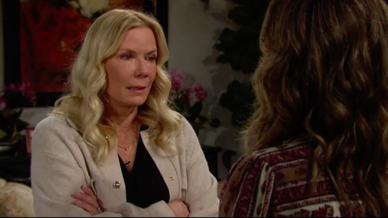Nel prossimo episodio di Beautiful, in onda martedì 2 maggio su Canale 5, Brooke è distrutta perché Ridge non è tornato a casa. Hope cerca di confortarla, mentre Eric non riesce a nascondere che la situazione è grave. Infatti Ridge decide di affrontare Brooke faccia a faccia e quando arriva lei si accorge che non ha più al dito la fede nuziale.