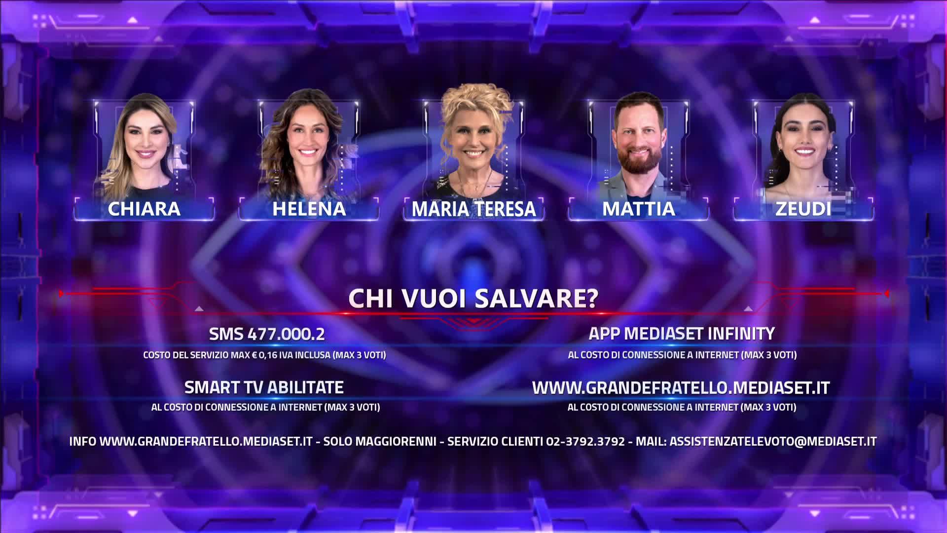 I concorrenti più votati sono: Helena Prestes, Chiara Cainelli, Maria Teresa Ruta e Mattia Fumagalli ai quali si aggiunge Zeudi Di Palma.