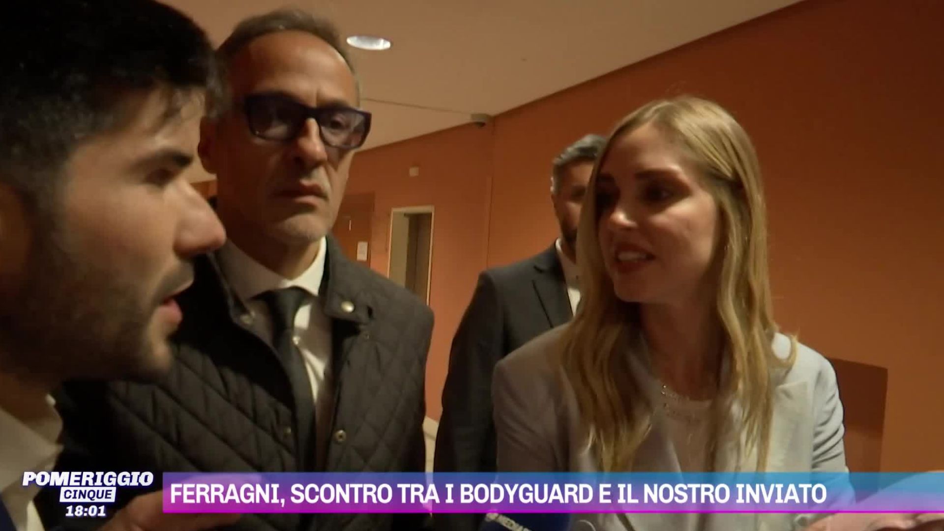 L'accaduto è stato ripreso all'Auditorium di Roma, che il 22 maggio ha ospitato un'iniziativa del Codacons sulla violenza sulle donne con Chiara Ferragni ospite d'onore. Presente all'evento anche l'inviato di Pomeriggio Cinque Michel Dessì che ha colto l'occasione per fare alcune domande all'imprenditrice e influencer. Quando il giornalista si è avvicinato a Chiara Ferragni, le guardie del corpo che la stavano scortando hanno avuto una reazione definita dalla stessa Myrta Merlino "insensata" con "mani addosso e mani sulla telecamera". "Perché mai tanto nervosismo - domanda in diretta a Pomeriggio Cinque la conduttrice - Perché mai tanta tensione, ci siamo chiesti. Facciamo solo il nostro mestiere".