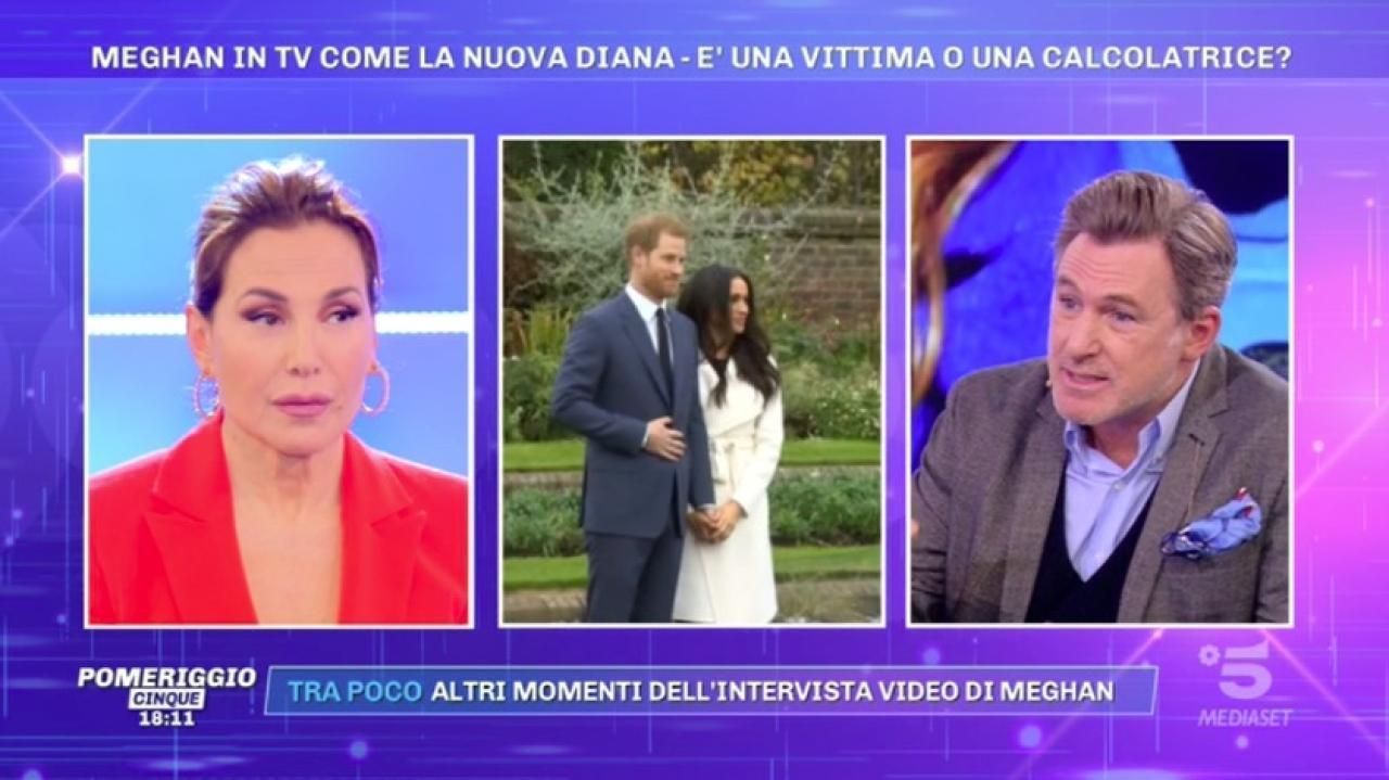 A Pomeriggio Cinque, Barbara d'Urso commenta con i suoi ospiti l'intervista rilasciata da Harry e Meghan a Oprah Winfrey.