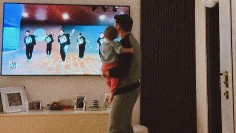 "Ti auguro un domani di ballare bene come tuo papà", scrive ironicamente Andrea pubblicando un video mentre balla con la prima figlia in braccio.