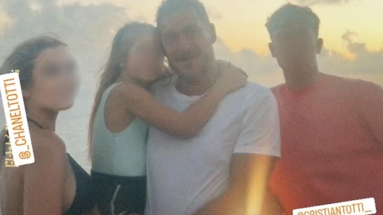 Francesco Totti pubblica sui social una foto insieme ai suoi tre figli. A fare da sottofondo alla sua storia su Instagram c'è il brano L'amore della mia vita di Arisa, chiaro riferimento all'affetto che l'ex capitano della Roma prova per Cristian, primogenito nato il 6 novembre 2005, Chanel, nata il 13 maggio 2007 e Isabel, venuta al mondo il 10 marzo 2016. Il campione ha trascorso infatti le vacanze con i tre figli tra Miami e Caraibi.