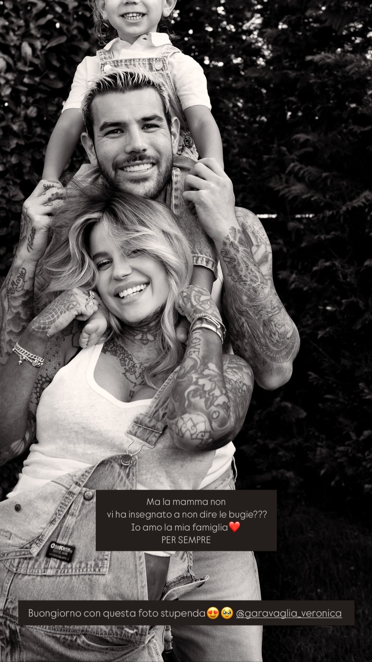 Zoe Cristofoli ha condiviso sul suo profilo Instagram un tenero scatto in bianco e nero che ritrae un dolce momento di famiglia insieme al compagno Theo Hernandez, il calciatore del Milan, e al primogenito, Theo Junior.