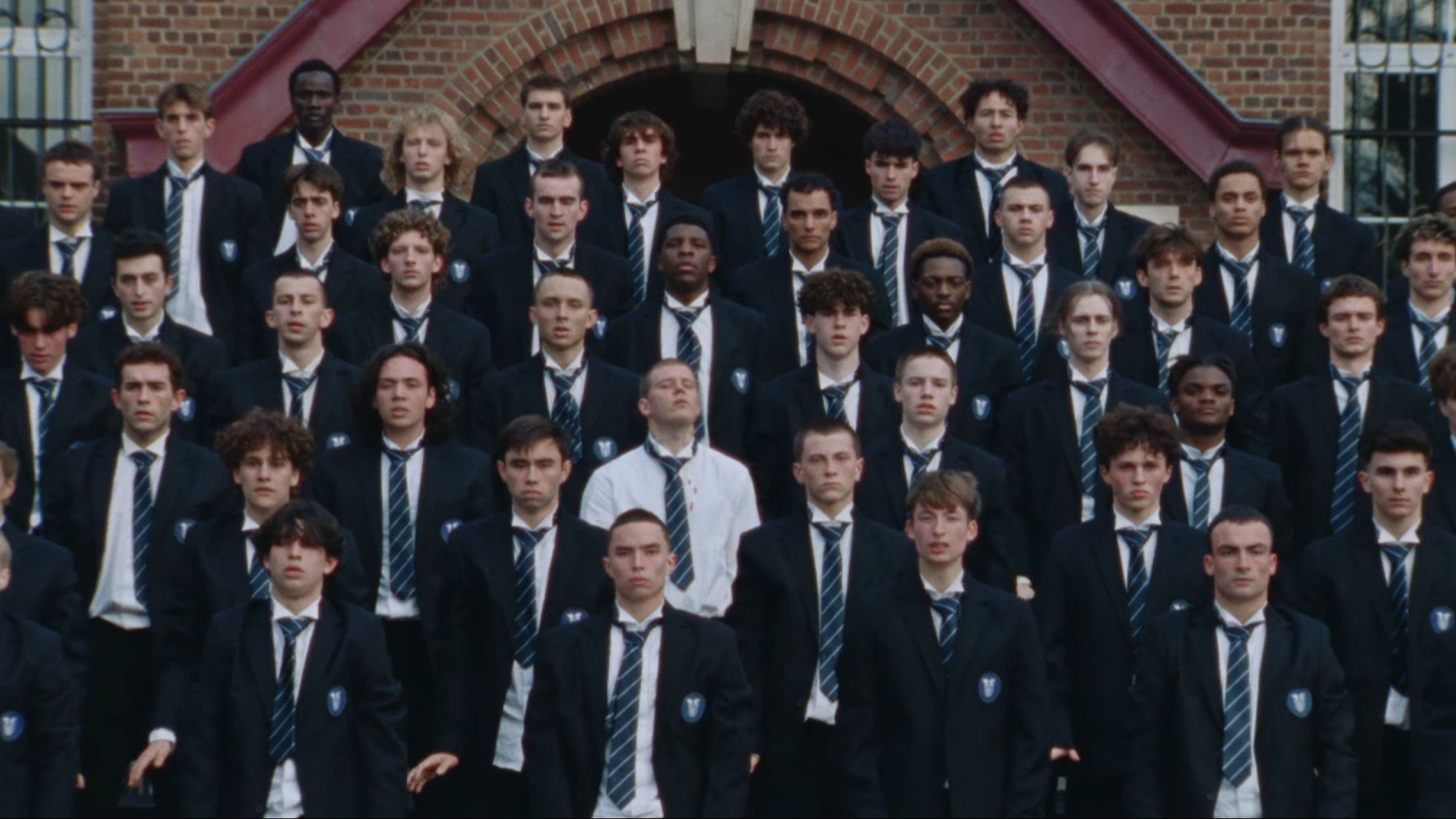 La scelta del collegio non è solo estetica. È un dispositivo, uno spazio chiuso, regolato, dove l’identità si costruisce per imitazione. Qui la mascolinità adolescenziale non viene raccontata, ma messa in scena attraverso i corpi: pressione del gruppo, gerarchie, tensione che cresce sotto la superficie. I gesti si irrigidiscono, poi diventano aggressivi, poi sfuggono. La violenza non arriva come rottura improvvisa, ma come accumulo.