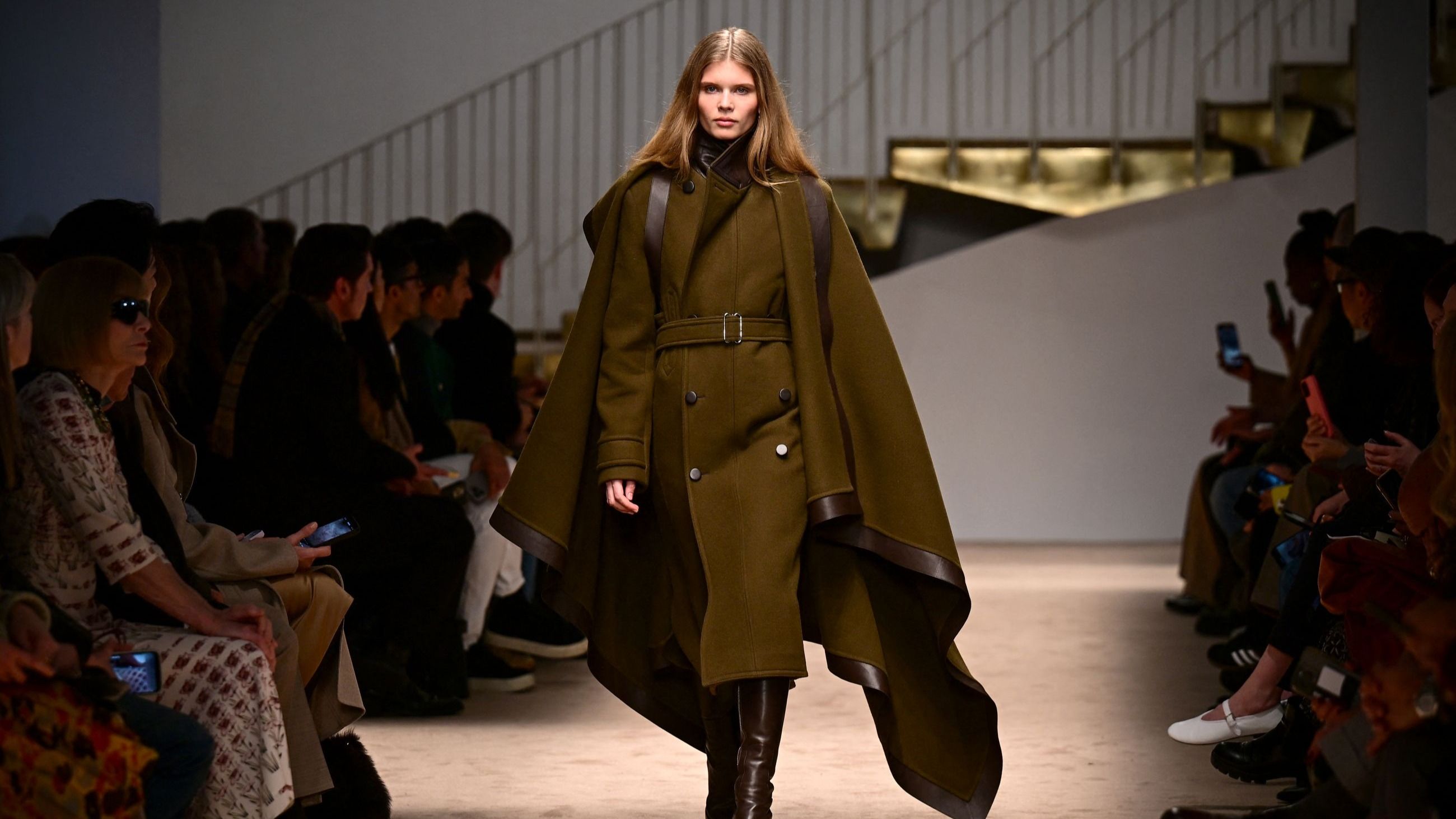 La celebrazione del savoir-faire e dell’artigianalità Made in Italy. Lo show di Tod’s fw ‘25-’26 si muove attorno a questi principi tanto cari al brand, eccellenza tricolore nella pelletteria e nelle calzature. Al Pac di Milano, ad accogliere gli ospiti della sfilata, Carla Bruni con ago e filo in formato oversize. L’ex première dame de France, trasformata per l’occasione in scultura dall’artista Nelly Agassi, svettava in un abito creato da frammenti di pelle di recupero con un patchwork geometrico in un dégradé di marroni. Una vera e propria opera d’arte, titolata Intelligenza Artigianale, per ricordare che dietro a ogni prodotto ci sono le mani e l’esperienza di persone in carne e ossa.