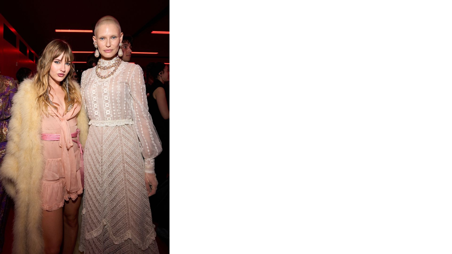 In front-row, tanti volti noti, come Jared Leto, Alessandro Borghi e la bassista dei Maneskin Victoria De Angelis, legato ad Alessandro Michele fin dai tempi di Gucci. Accanto a loro ci sono le muse del designer romano. In primis l’artista trasformista statunitense Chappell Roan, perfetta per questo nuovo corso di Valentino. Poi, Bianca Balti e Georgina Rodriguez, fidanzata del calciatore Cristiano Ronaldo.