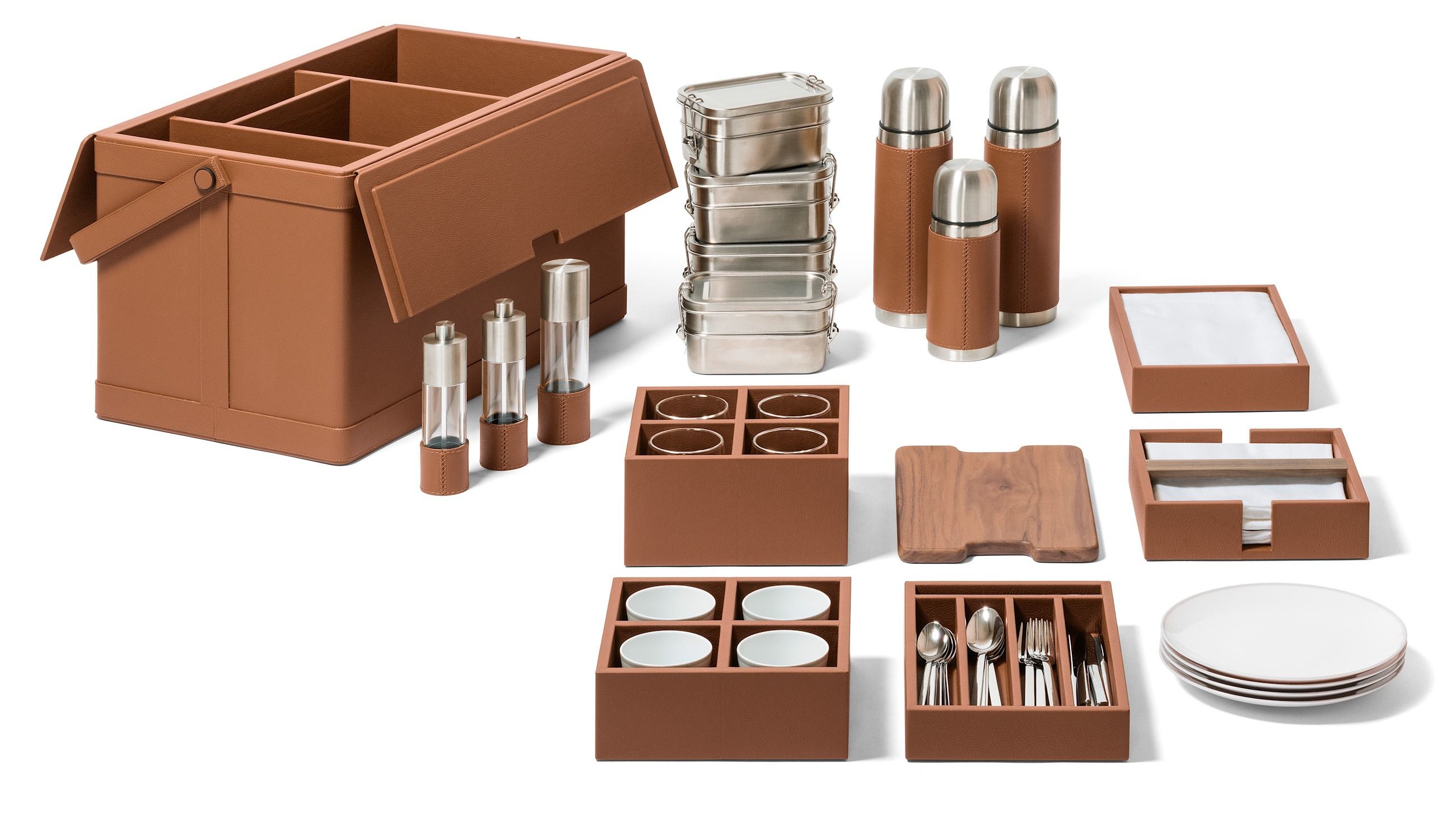 I cestini da picnic sono sempre più eleganti. Hermès incanta con il secchiello di vimini dagli inserti in pelle, che culla piatti, bicchieri e posate dai dettagli glam. Se i sogni stanno in un cassetto, è vero anche che sono molti quelli da custodire nei tanti scomparti del picnic trunk di Poltrona Frau, con tovaglia compresa. Un vero e proprio portagioie, estremamente raffinato.