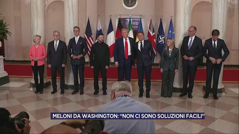 In diretta da Washington, le immagini del Presidente americano Donald Trump insieme al Presidente ucraino Volodymyr Zelensky e gli altri leader europei.