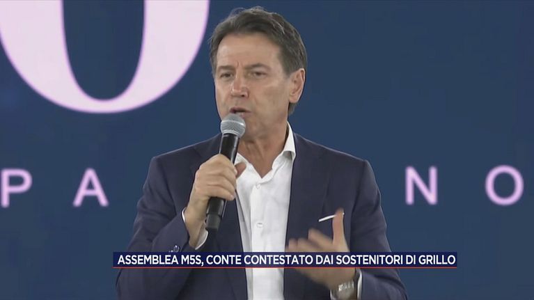 Giuseppe Conte al primo giorno dell'assemblea costituente dell'M5S viene contestato da un gruppo di sostenitori di Grillo.
