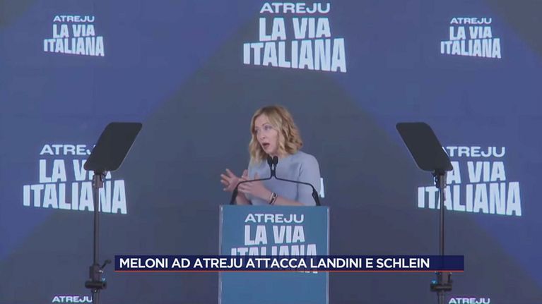 Giorgia Meloni chiude Atreju con un duro attacco a Landini e Schlein.