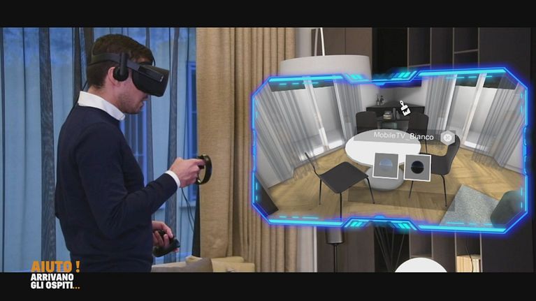 Andrea aspetta Vitaliano per proporre la sua idea virtuale del nuovo soggiorno