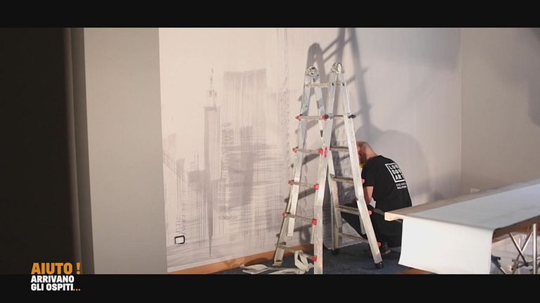 Nel soggiorno di Claudia si proceder alla posa dei rulli di carta da parati che creeranno un effetto scenografico
