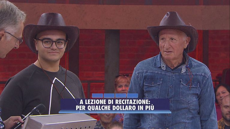 Alcuni spettatori devono interpretare dei personaggi del film western "Per qualche dollaro in più" .