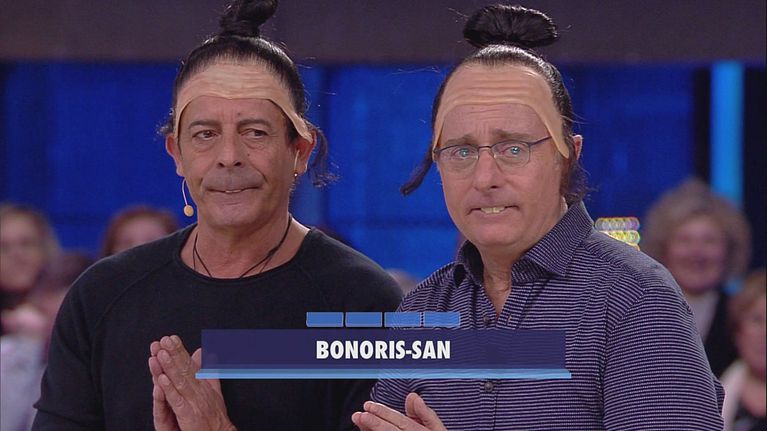 Pintus si siede accanto a Paolo Bonolis per sottoporre i concorrenti alle domande.