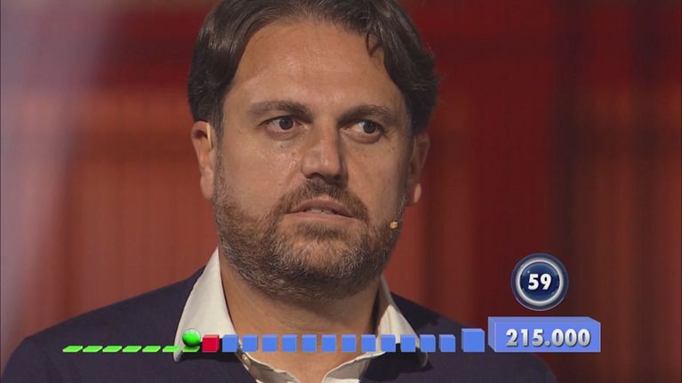 Davide deve sbagliare tutte le risposte per vincere 215.000 euro.