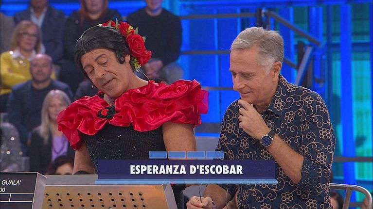 Pintus si siede accanto a Paolo Bonolis per sottoporre i concorrenti alle domande.