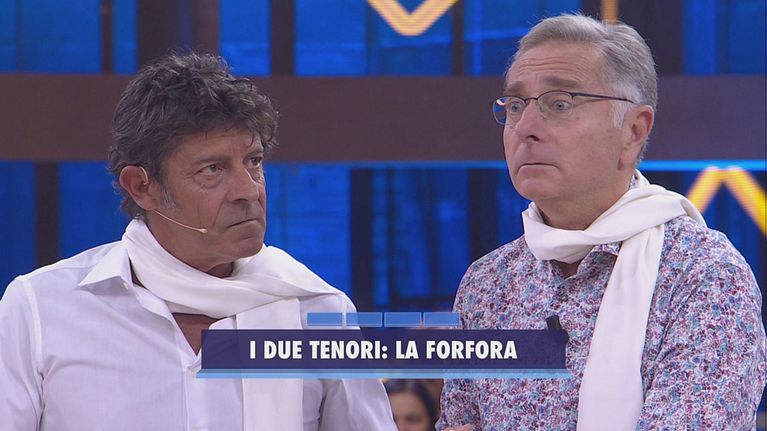 Le domande dei due tenori per la concorrente Stefania: riuscirà a rispondere correttamente?