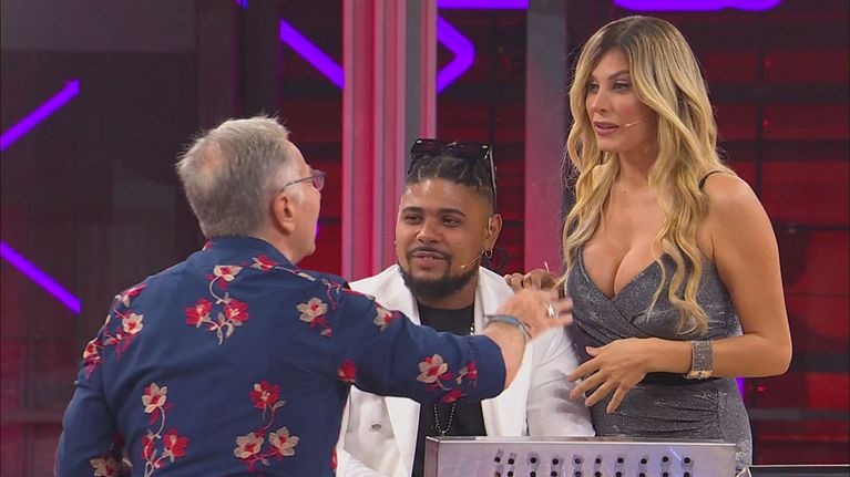 Tutto lo studio di Avanti un altro fa gli scongiuri all'ingresso dello iettatore.