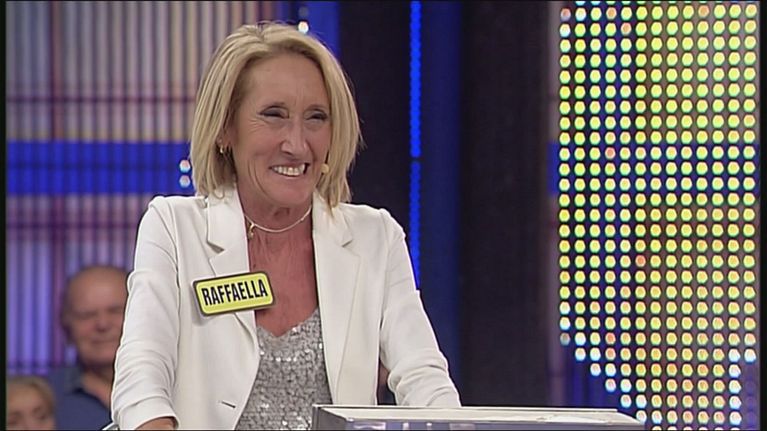 Raffaella, una concorrente molto emozionata e piena di energia, mette a dura prova Paolo Bonolis.