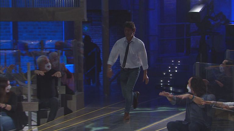 Il giovane concorrente affronta la prova finale di Avanti un altro!