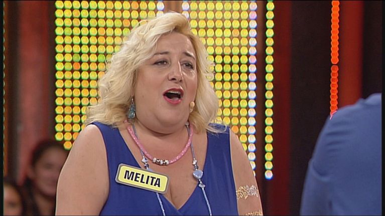 Melita, concorrente canterina, deve rispondere alle domande di Olivia.