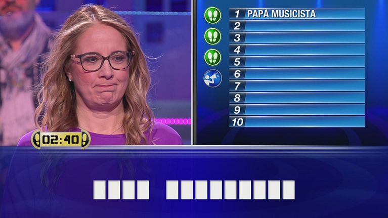 Alessia sfida il campione Paolo nel gioco "Parole Parole".