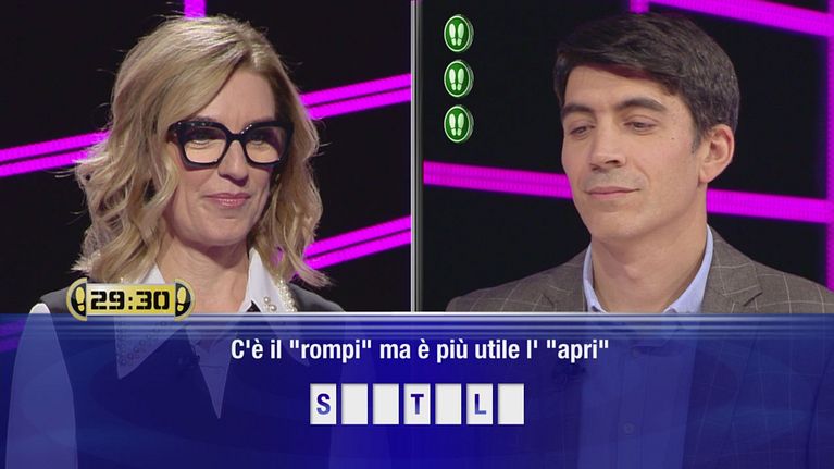 Sara sfida il campione Giovanni al gioco "Parole, parole, parole".