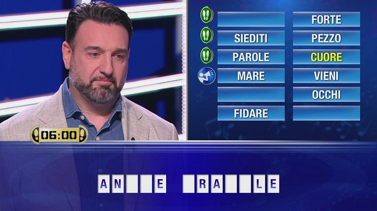Andrea sfida il campione Paolo nel round "Parole parole".