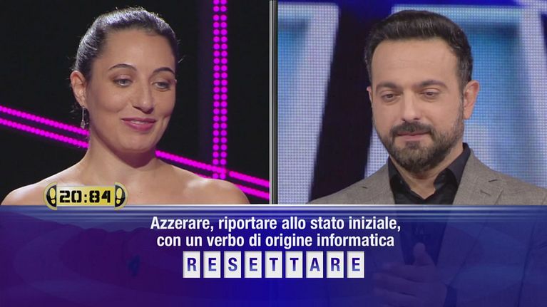 Sara sfida il campione Giovanni al gioco "Parole, parole, parole".