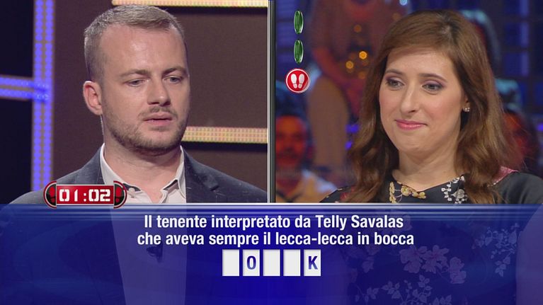 Maria Teresa sfida il campione Riccardo al round "Parole, parole, parole".