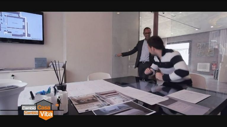 Andrea Castrignano illustra a Nicoletta le idee di "Cambio casa, cambio vita" per ristrutturare il suo nuovo appartamento.