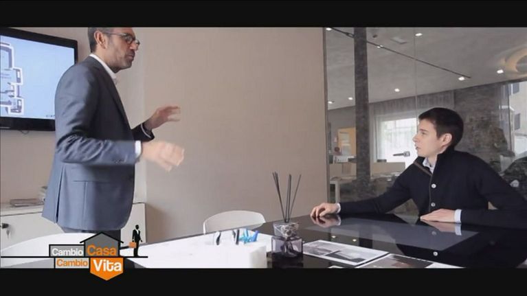 Andrea Castrignano presenta ad Irene il progetto di "Cambio casa, cambio vita!" per arredare il suo nuovo appartamento a Milano.