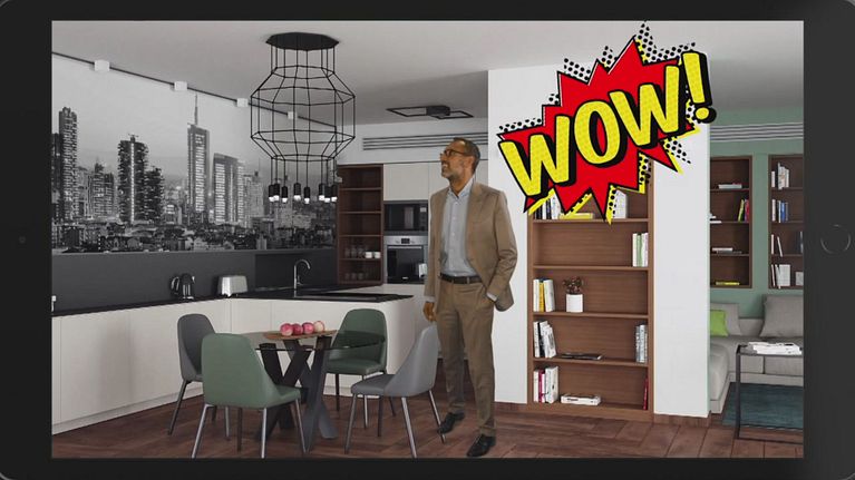 Andrea Castrignano illustra a Nicoletta le idee di "Cambio casa, cambio vita" per ristrutturare il suo nuovo appartamento.
