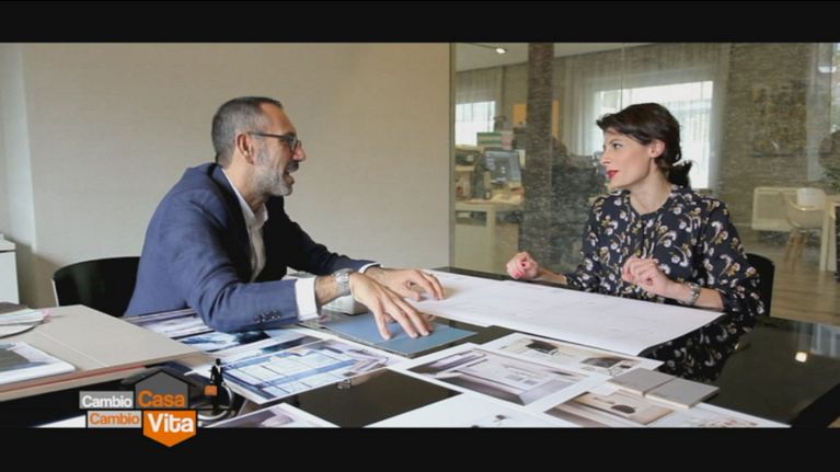 Andrea Castrignano illustra a Omar ed Emanuela le idee di "Cambio casa, cambio vita!" per rinnovare il loro appartamento.