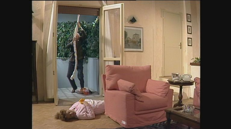 Mentre Raimondo in vestaglia da camera sta lavorando seduto al suo scrittoio, la tata, di ritorno dalla spesa, gli comunica che e' appena arrivata da un viaggio la signora Perini, l'avvenente vicina di casa. Da quel momento Raimondo viene preso da un'inspiegabile frenesia...