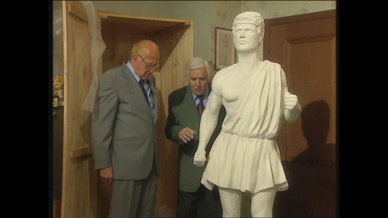 Raimondo decide di investire in opere d'arte. Si fa dunque portare in visione la statua di un dio greco che pero' cade e va in frantumi. Per rimediare al pasticcio, decide di far verniciare di bianco, dietro un lauto compenso, un giardiniere "bello come un dio greco", e lo restituisce al posto della statua che e' andata in cocci. Ma ecco arrivare un ispettore che scopre che la statua non era altro che un falso molto evidente...