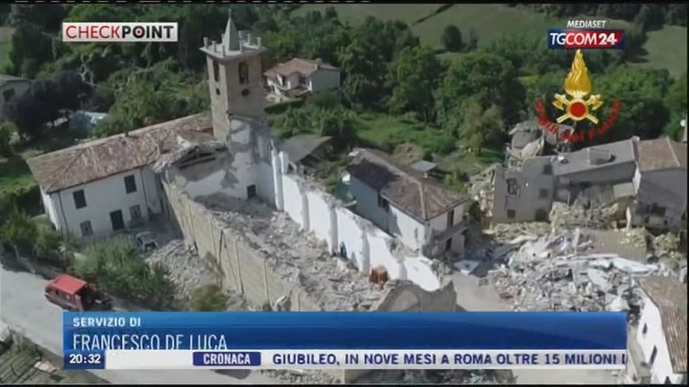 Sisma, i droni nelle chiese colpite, a lavoro per salvare le opere d'arte.