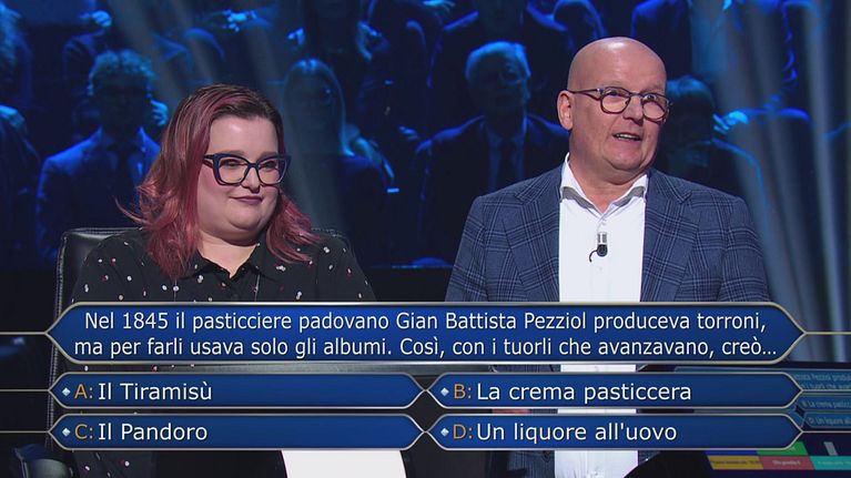 La signora Vittoria risponde alla decima domanda che le permetterà di vincere 1 milione di euro.
