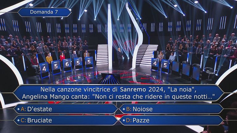 Gabriele chiede l'aiuto del 50:50 per la domanda da 100.000 euro.