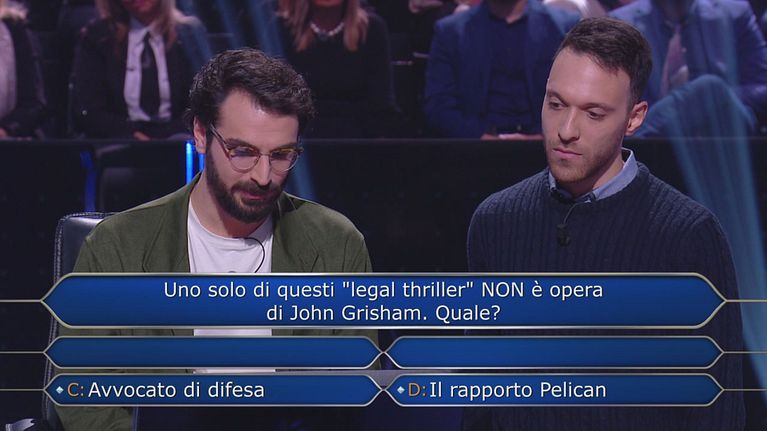 Per rispondere alla quarta domanda Riccardo ricorre a due aiuti: il 50:50 e l'aiuto del suo amico Alessandro.