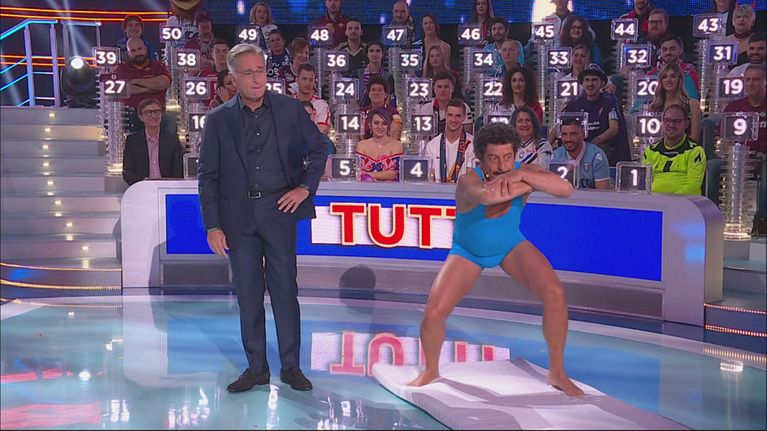 La performance dell' "atleta" provoca la sdegnosa e furiosa reazione del conduttore, che ribadisce fermamente la sua dignità