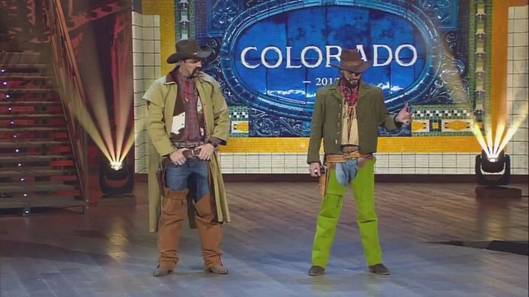 "Pinturicchio", fa il suo ingresso trionfale nello studio di Striscia, accolto da Greggio e Iacchetti. Si è anche cimentato in una performance canora… fuori dalle righe. Avrà usato l'auto-tune?