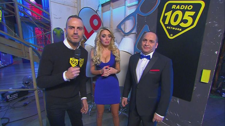 Radio 105 back stage con Scintilla ed Elena Morali.