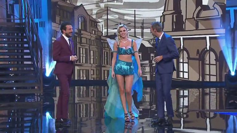 "Pinturicchio", fa il suo ingresso trionfale nello studio di Striscia, accolto da Greggio e Iacchetti. Si è anche cimentato in una performance canora… fuori dalle righe. Avrà usato l'auto-tune?