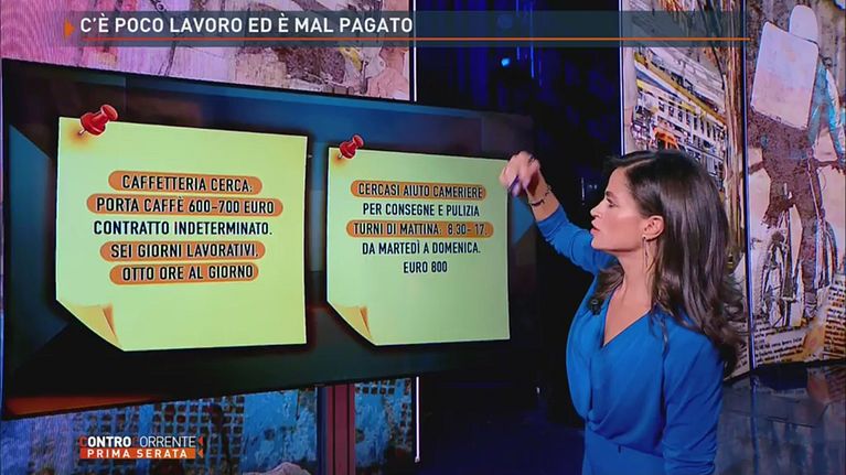 Alla lavagna, Veronica Gentili legge alcuni annunci di lavoro.