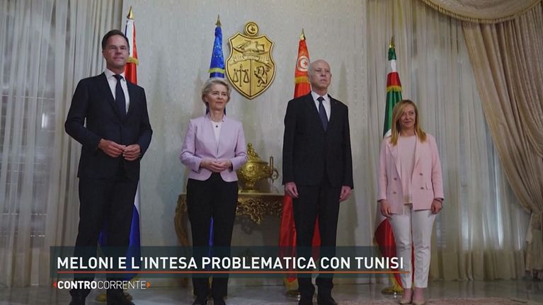 La Presidente del Consiglio Giorgia Meloni incontra il Presidente tunisino Saied, insieme a von der Leyen e Rutte.