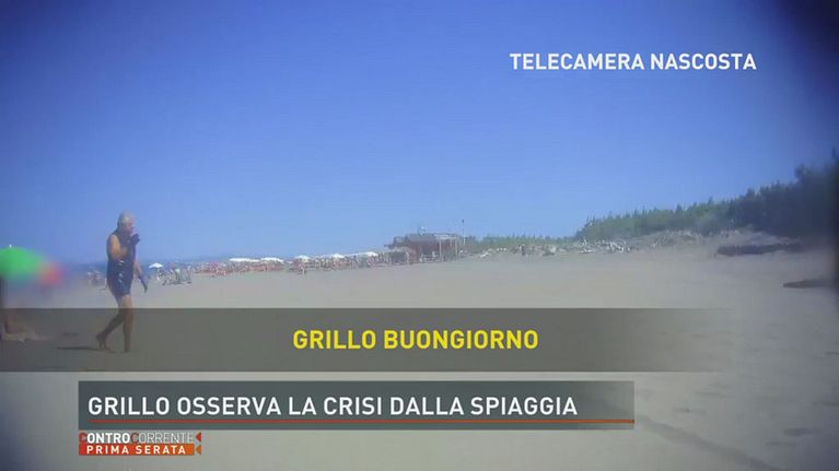 Grillo osserva la crisi dalla spiaggia