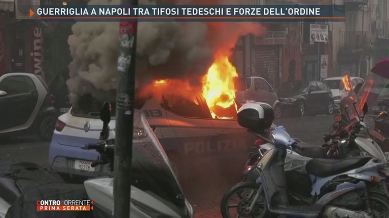 Le drammatiche immagini degli scontri avvenuti a Napoli tra i tifosi dell'Eintracht e le Forze dell'ordine.