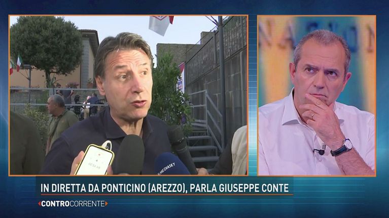 Le parole ai microfoni di Controcorrente di Giuseppe Conte in diretta da Ponticino.