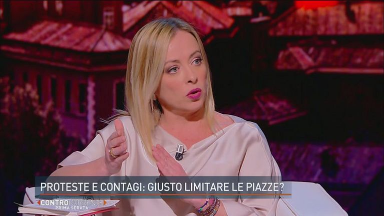 Giorgia Meloni interviene in studio sulle proteste No Vax, sui contagi in aumento e sull'operato di Draghi e Lamorgese.